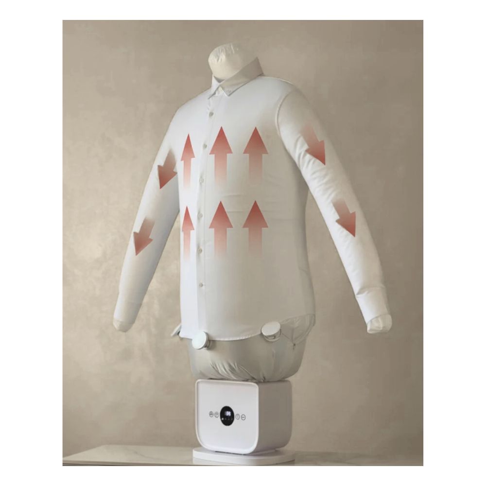 Our ironing mannequin dries and smooths your clothes fast, with zero noise and almost no space required.The finish is clean, crisp, and professional — just like a dry cleaner, but right from your home.